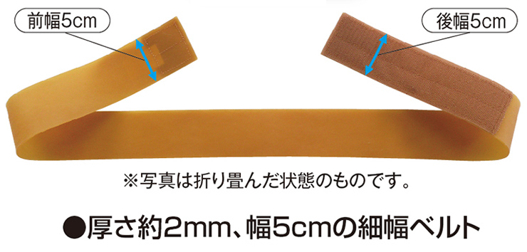 こちらのベルトは幅が5cmしかないため固定力は低いですが気軽に脱ぎ着ができる商品です。