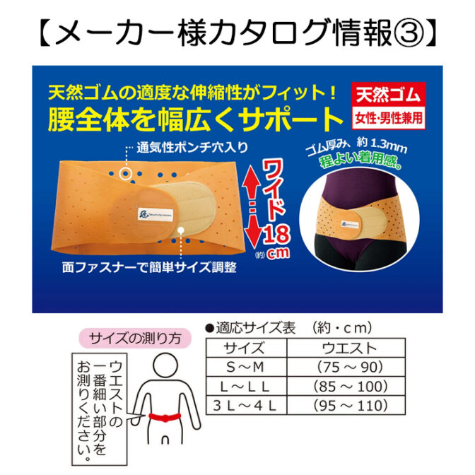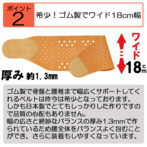 ・幅が約18cmとゴム素材では珍しい腰全体を固定できる長さとなっております。